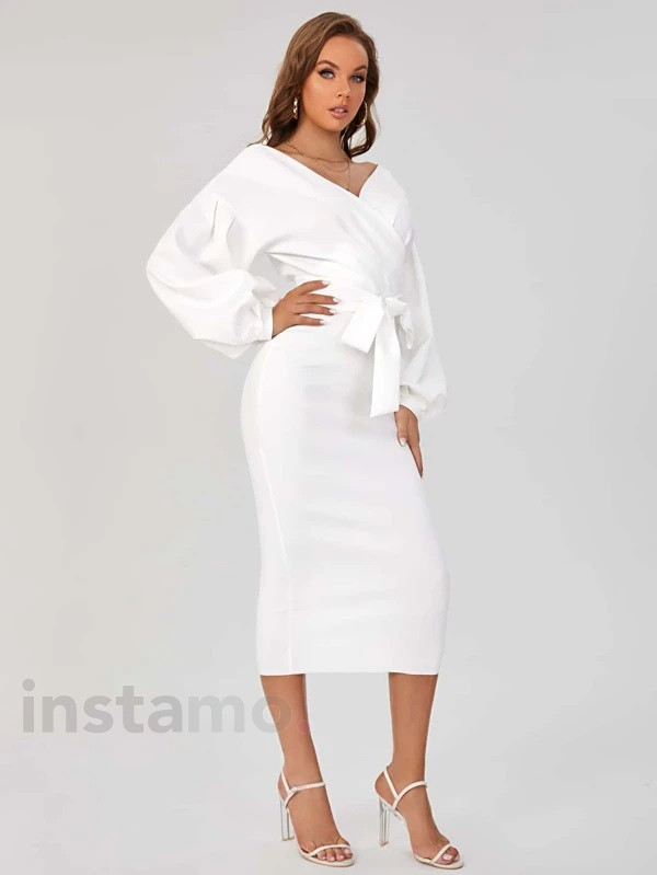 - Typ oblečení: Šaty- Barva : Bílá- Určeno pro: Ženy- Složení : 96%polyester, 4% elasten- Obvod pasu : (S)2 x 35 cm, (M)2 x 37 cm, (L)2 x 39 cm- Délka rukávu : (S) 48 cm, (M) 49 cm, (L) 50 cm- Celková délka : (S) 65 cm, (S) 125 cm, (M) 126 cm, (L) 127 cm- Země původu : P.R.C.