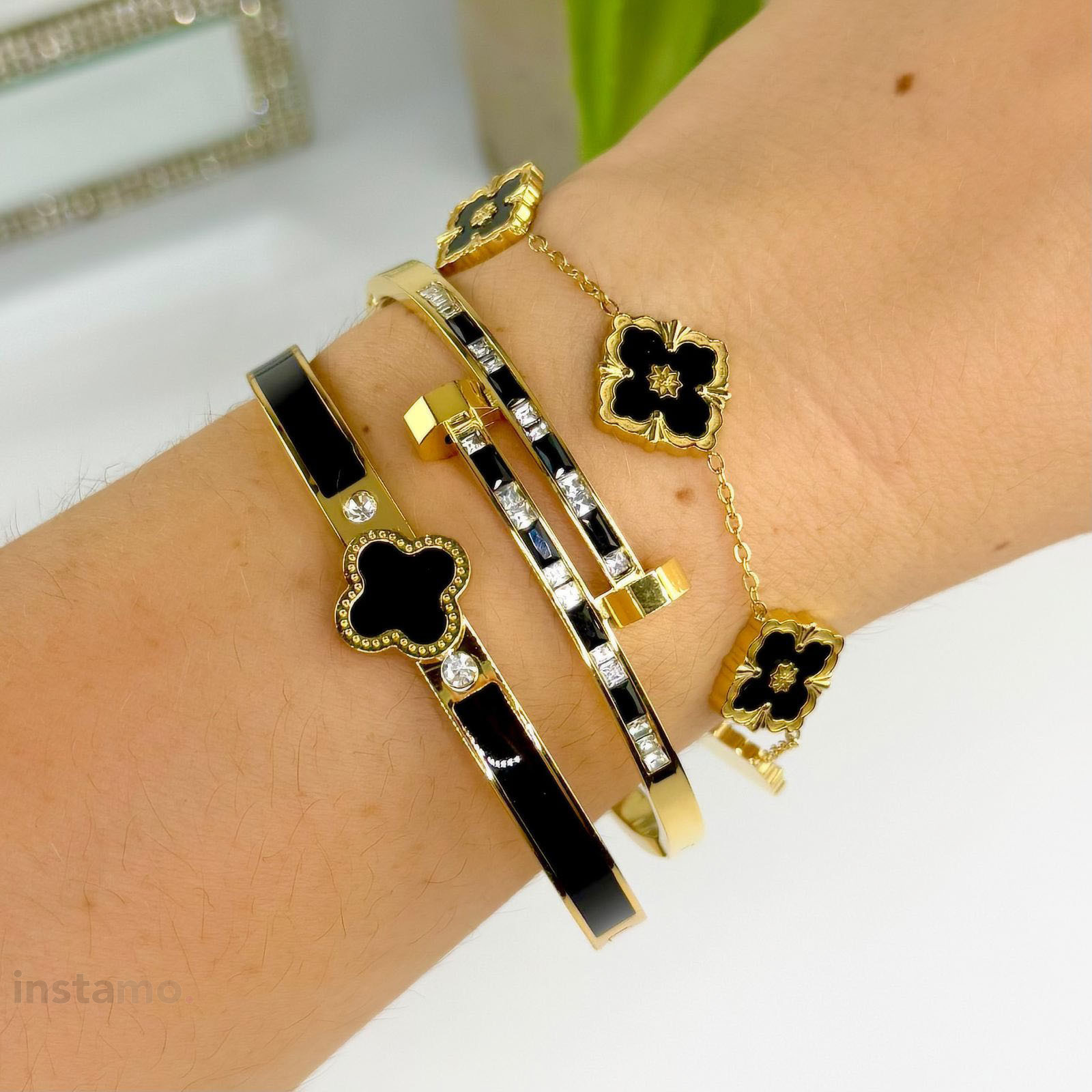 Materiál : Chirurgická ocelUrčeno pro: ŽenyPovrchová úprava : Pozlacené žlutým zlatemDoplněk šperku : Zirkony / ŠtrassBarva doplňku : Bezbarvý čirý křišťál, ČernáDélka náramku : 17 cmŠířka náramku : 4 mmDárková krabička : Bez krabičky- Instagram Photos